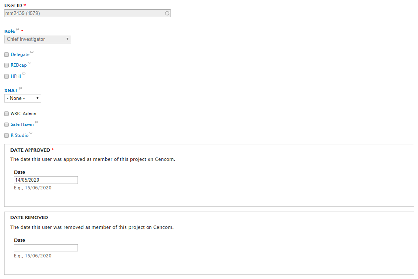 - For access to XNAT, you will need to choose the level of access you grant this user: Collaborator, Owner or User