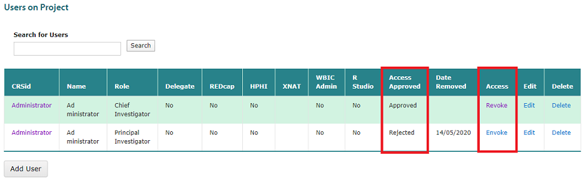 Once this date passes, the users ‘Access Approved’ status will say ‘Rejected’. To remove users with immediate effect see Revoke and Envoke User Access